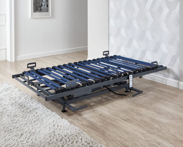 - 4-geteilte Liegefläche motorisch verstellbar, Unterschenkellehne durch manuelle Rastung in Beinhochlage verstellbar